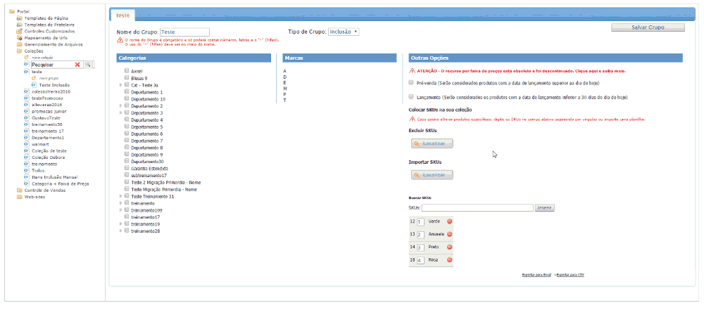 Feito isso, sua coleção terá sido salva. Agora, você precisa acrescentar os produtos que fazem parte dela, através da inclusão de Grupos à coleção.