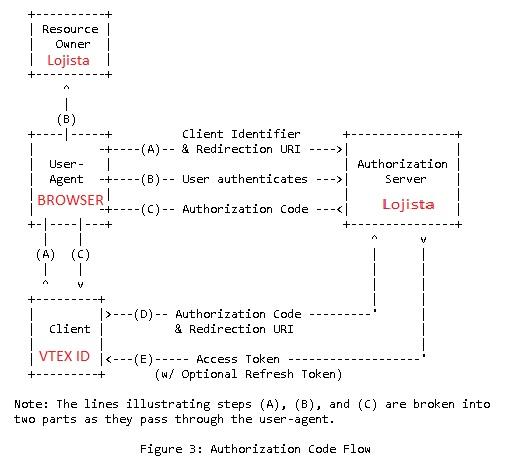 Com base na documentação oficial, veja abaixo uma ilustração que explica a integração do OAuth2 com o VTEX ID: