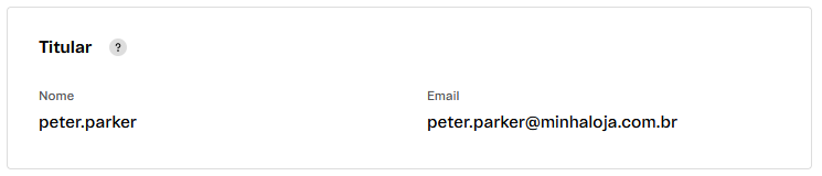 Esta seção apresenta detalhes do usuário titular da conta. Cada conta VTEX tem apenas um titular, a quem é dado acesso total a todas as seções do Admin, incluindo ações importantes de manutenção e autorização.