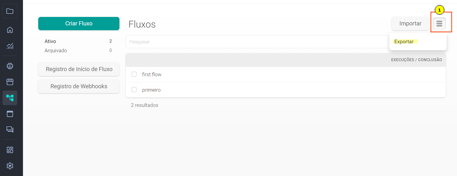 Existem dois caminhos de chegarmos na página de exportação de fluxos.