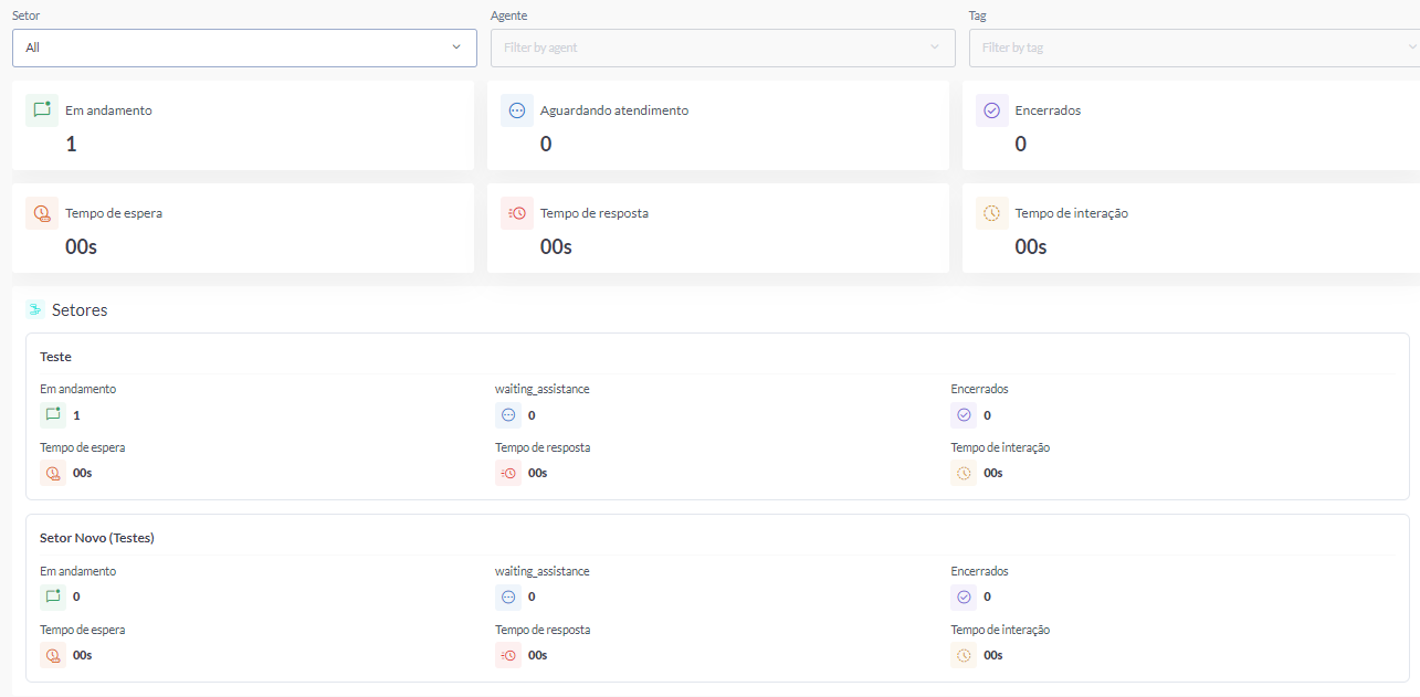 É o usuário que utiliza o módulo de Chats para realizar atendimentos, tem permissão mínima no sistema e visualiza somente o módulo de Chats e o Dashboards com suas métricas individuais. Os atendimentos direcionados ao agente são definidos através do setor e fila em que está incluso.