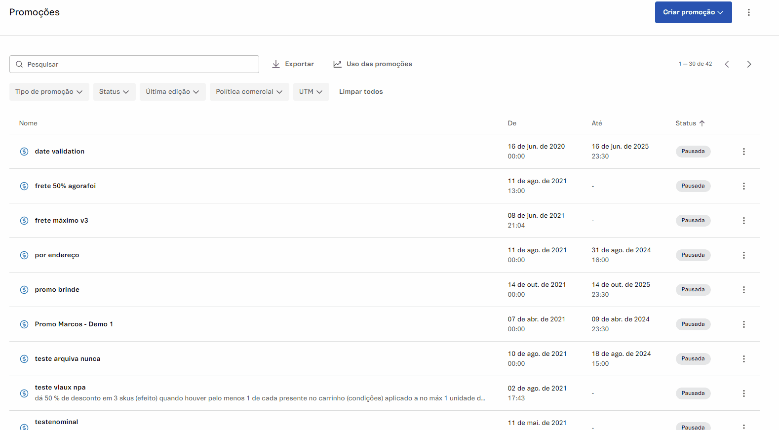 O número máximo padrão de promoções ativas é 100. Caso precise aumentar esse limite, entre em contato com nosso Suporte.