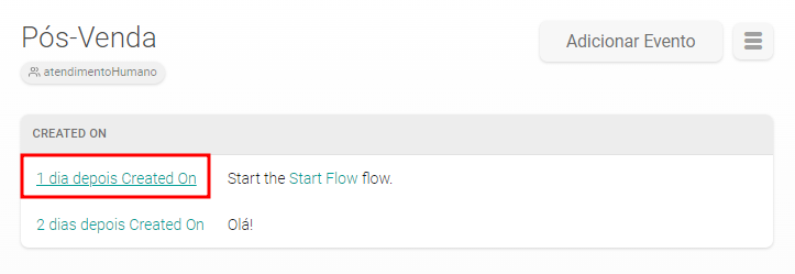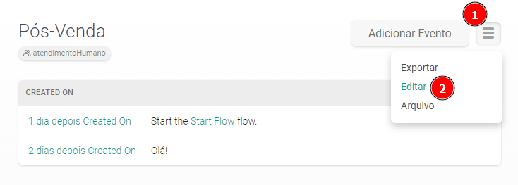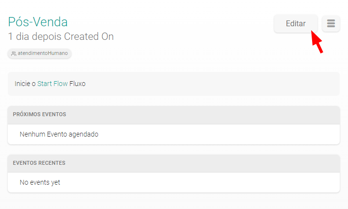 Para editar quando uma mensagem ou fluxo serão enviados, escolher outro fluxo, ou mudar a ação de ""Enviar uma mensagem"" para ""Começar um fluxo"" (e vice-versa):
