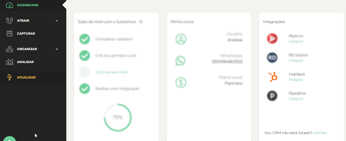Para realizar a integração acesse no seu painel do VTEX Assisted Sales (SuiteShare) as integrações, você pode acessar de duas formas.