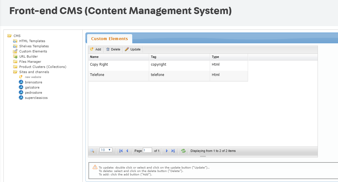 Para criar um controle customizado, acesse o Admin e entre no menu Storefront. Clique em Layout, depois na pasta CMS e em Custom Elements.