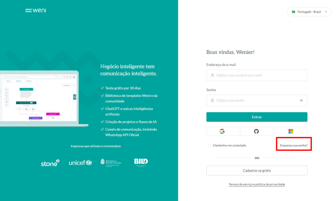 Para trocar a senha da sua conta na Weni, siga os passos abaixo: