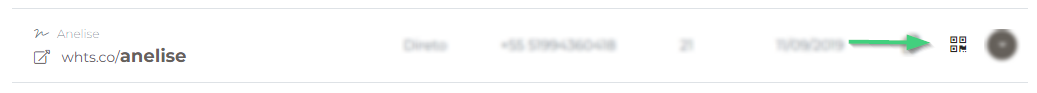 Clique no ícone do QRCODE, localizado no lado direito do link que você deseja criar um código.