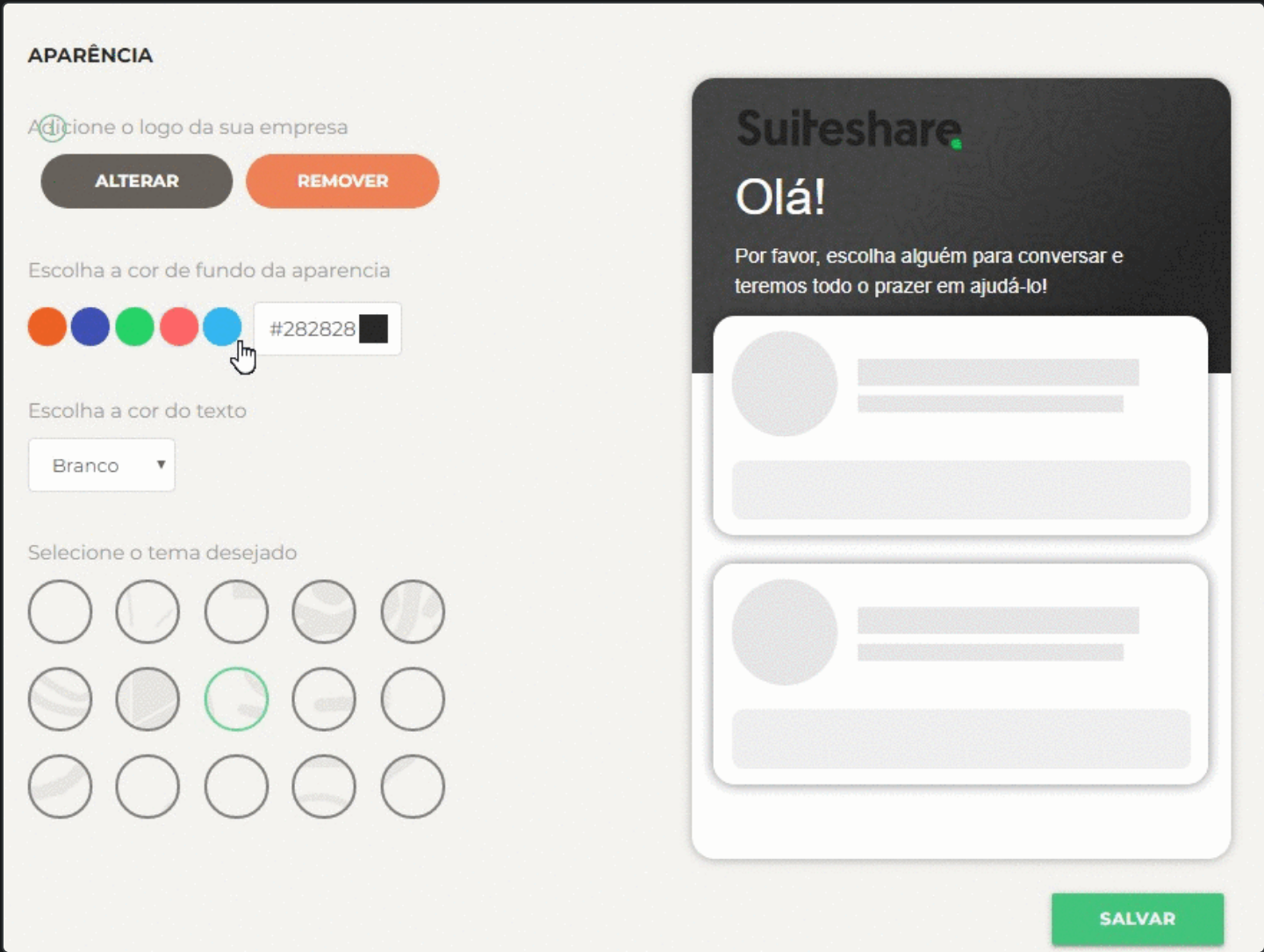 Atenção: Se você ir para a aparência e não salvar seu seletivo, você terá que refazer as opções.