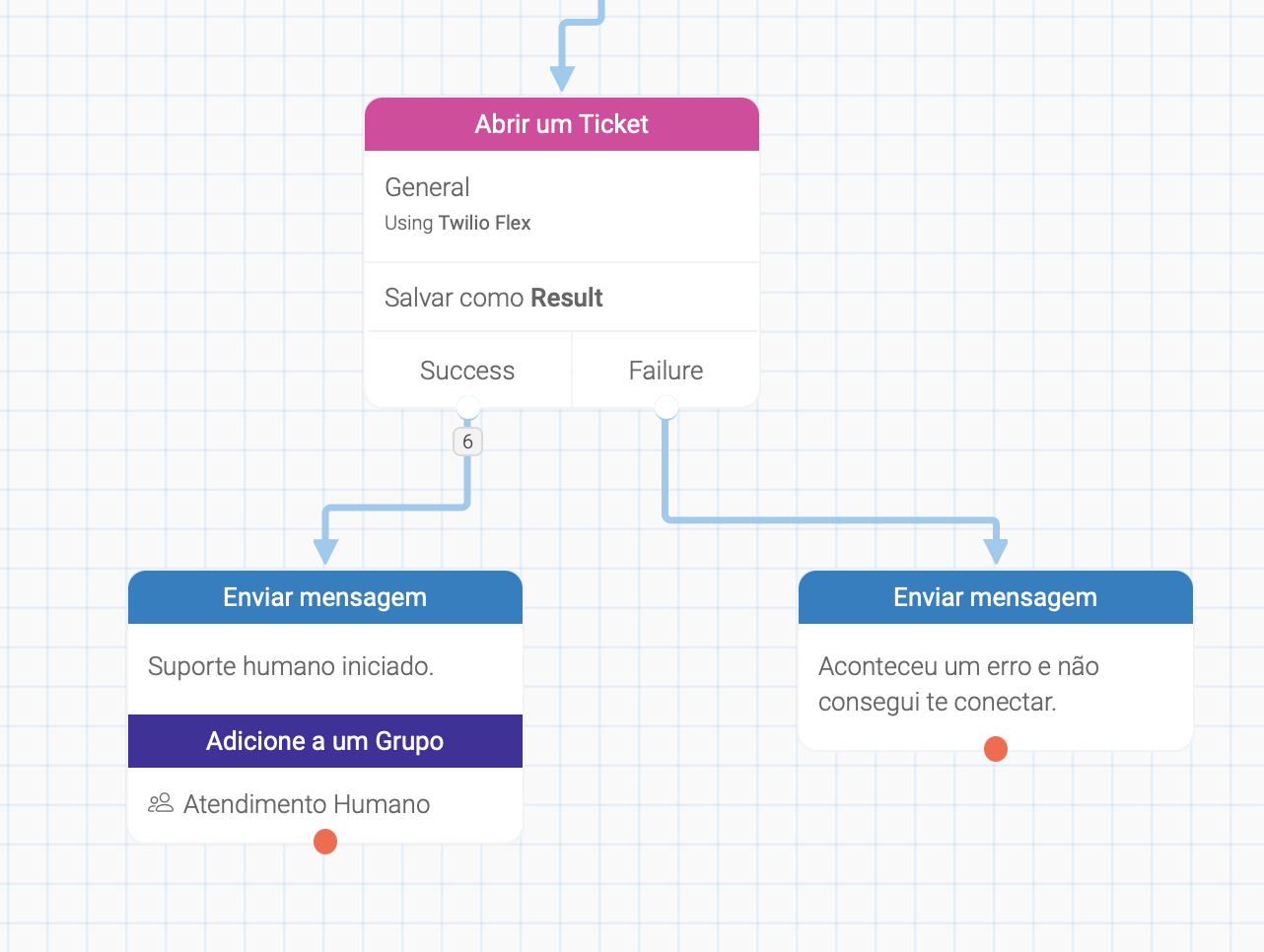 Este pode ser um fluxo extremamente simples, onde a única ação é remover o contato do grupo de controle Atendimento Humano: