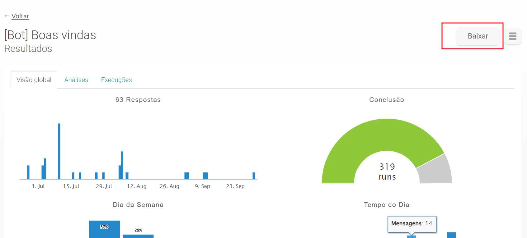Depois de construirmos e rodarmos nossos fluxos, o nosso próximo anseio sem sombra de dúvida é poder analisar os resultados que estamos tendo. Quantas pessoas passaram pelo meu fluxo? Dessas pessoas, quais decisões elas tomaram? Essas e outras perguntas permeiam muito a nossa cabeça e por isso temos as opções de visualizar resultados e relatórios na plataforma.