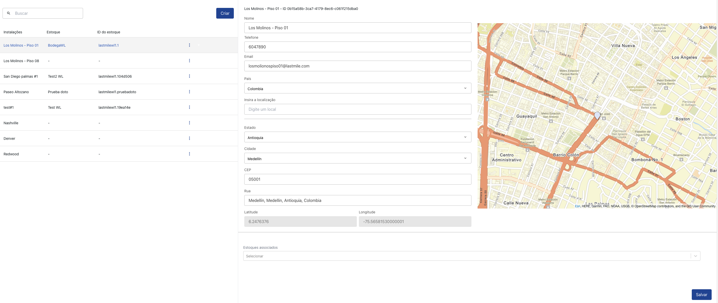 Criar. - Preencha o formulário com as informações de localização da sua instalação. É obrigatório preencher os campos Rua, Cidade e Estado.