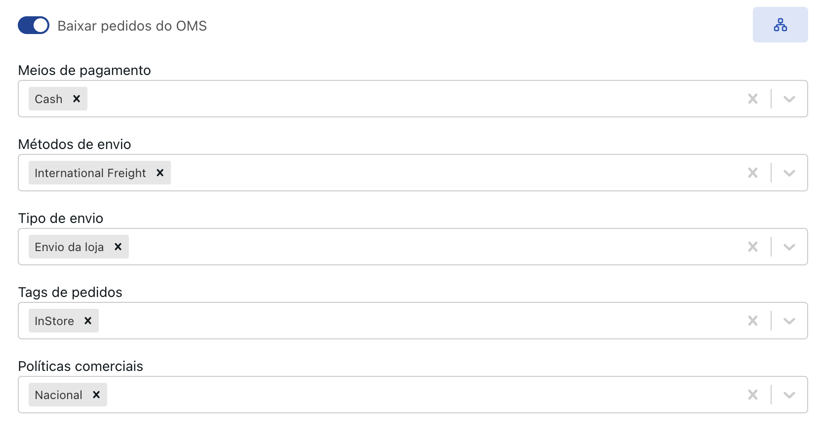- Baixar pedidos do OMS: permite exportar pedidos do OMS.