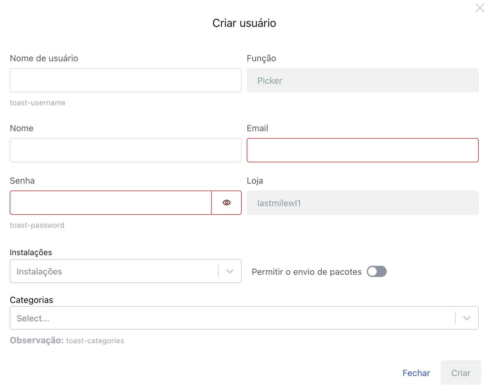 Criar. - Selecione o tipo de permissão que deseja para o seu novo usuário: Admin ou Separador.