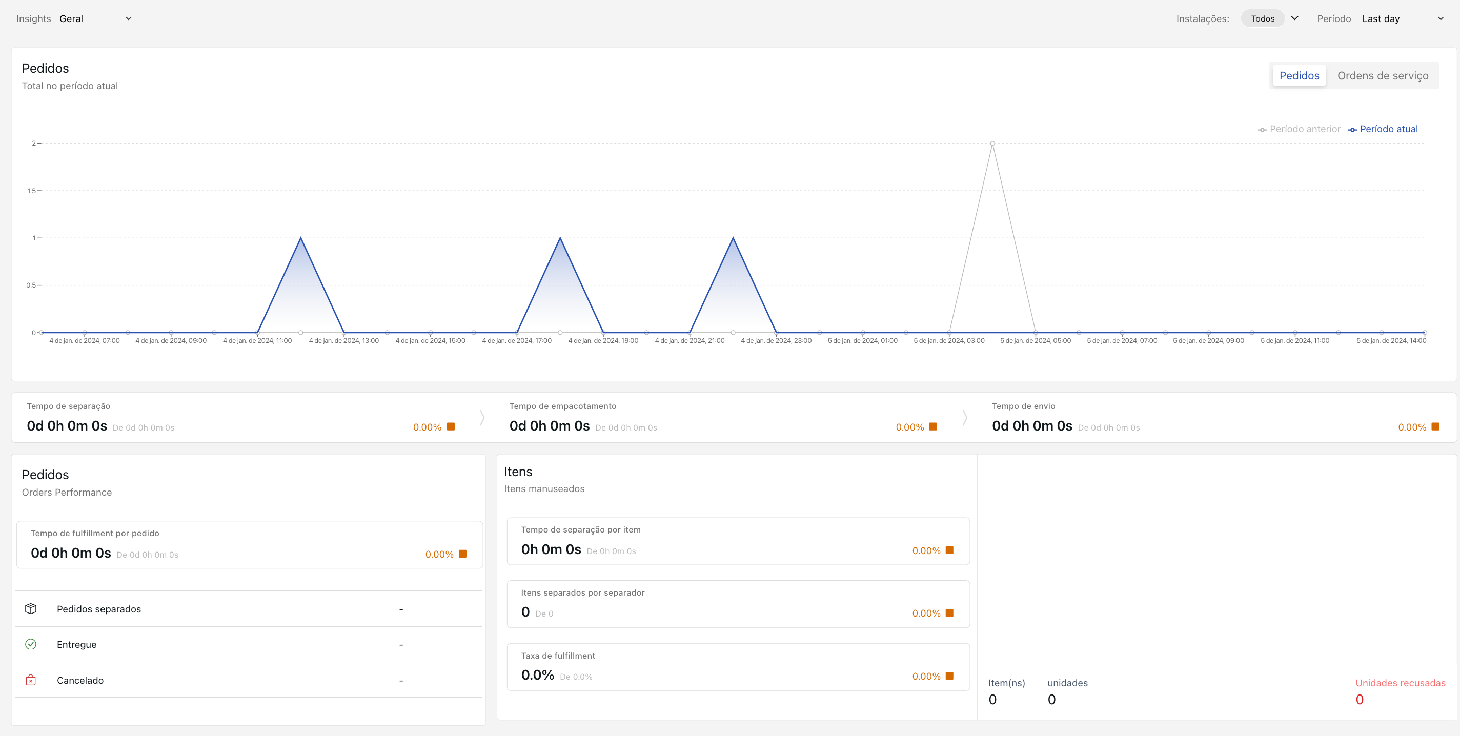 Insights é uma página do Admin VTEX que exibe informações sobre o desempenho da sua loja em relação ao VTEX Pick and Pack.