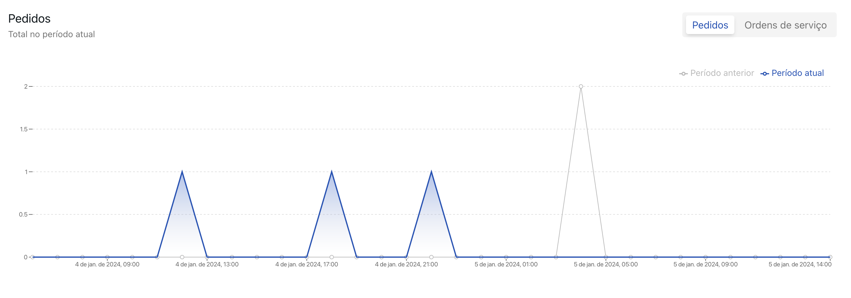 Nesta seção você terá acesso ao total de pedidos ou ordens de serviço de um determinado período de tempo e em determinadas instalações. Você pode selecionar os seguintes períodos: