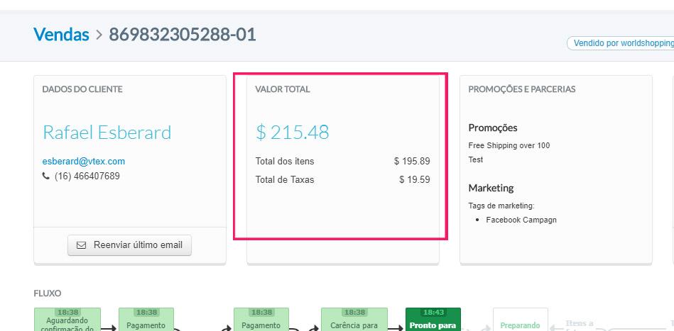 - Aqui, você verificará o valor cadastrado na planilha mais todos os adicionais somados a esse valor.