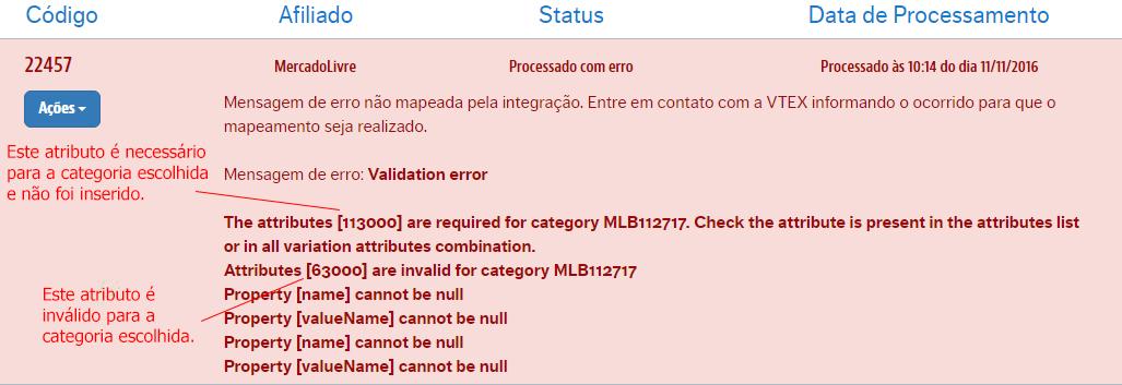Se algum desses atributos for preenchido incorretamente (por exemplo, se você atribuiu um código referente a Tamanho de cinto para um calçado), o Integrações vai retornar um erro com o seguinte formato: