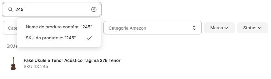 • Categoria Amazon: este filtro apresenta as opções de categorias de SKUs na Amazon.