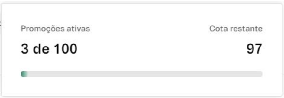 O número máximo padrão de promoções ativas é 100. Caso precise aumentar esse limite, entre em contato com nosso Suporte.