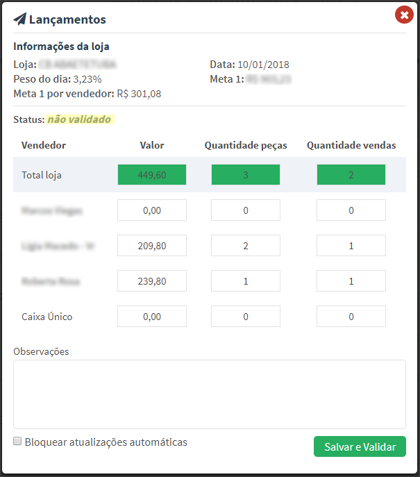 Para evitar inconsistências, realize a validação sempre no dia seguinte ao fechamento.